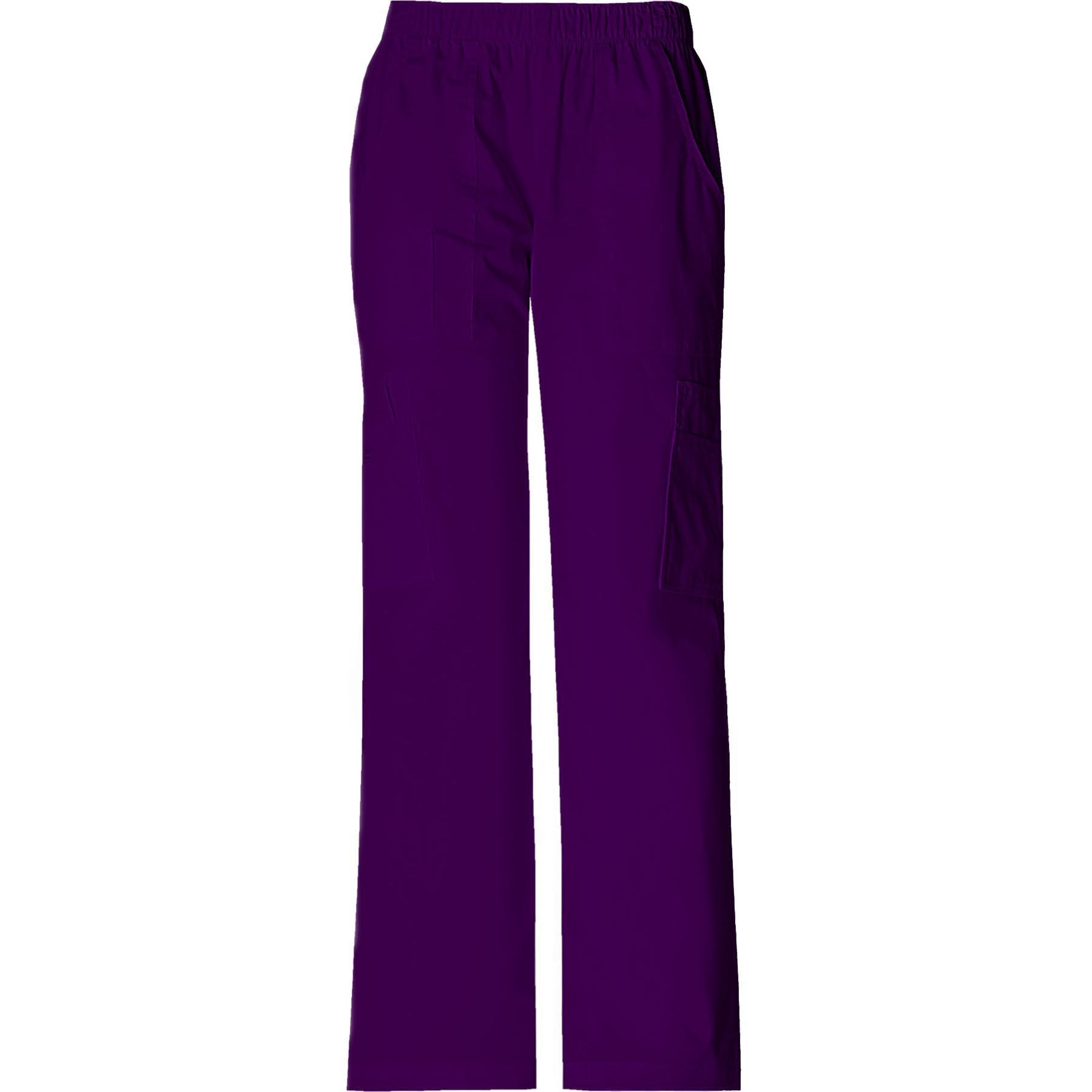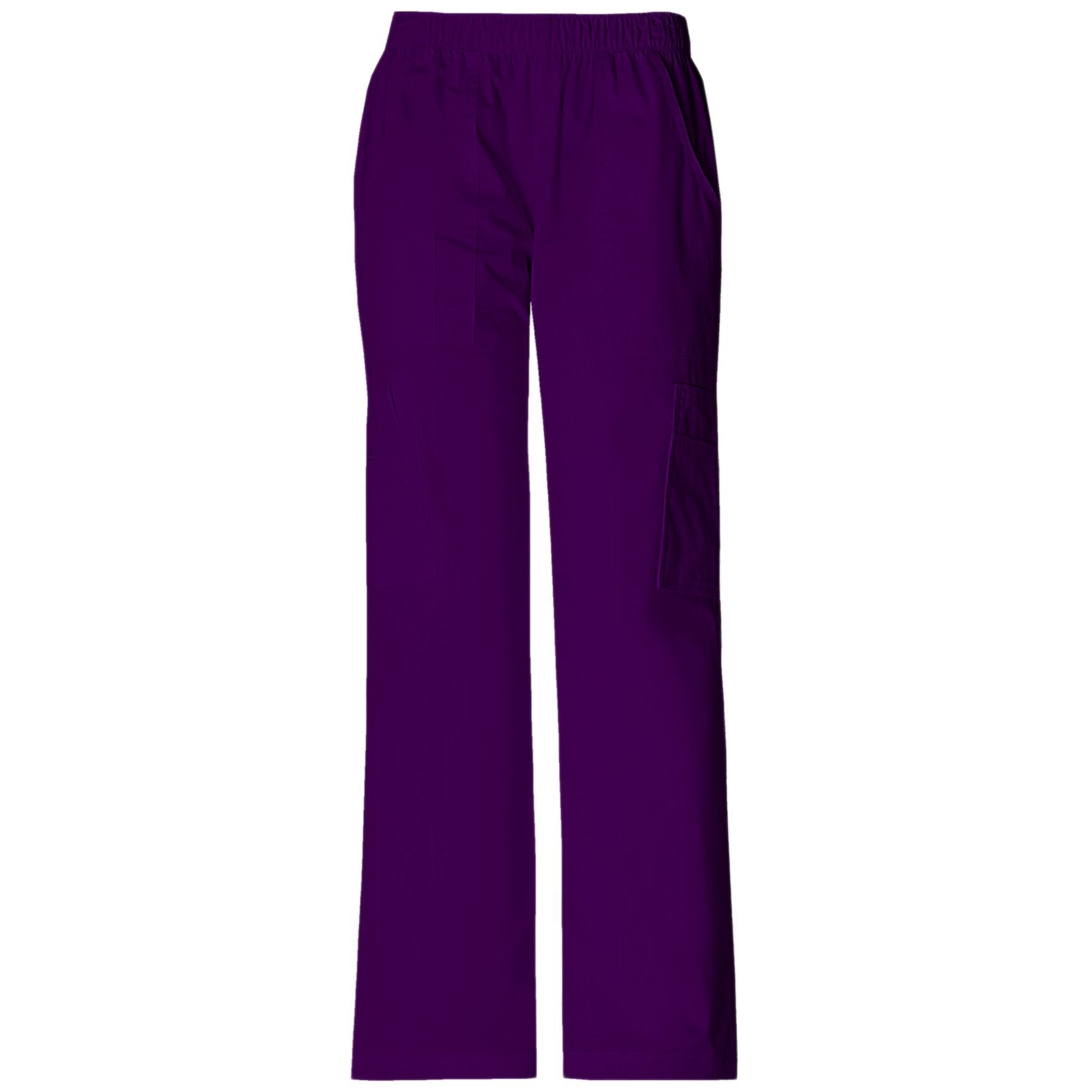 Cherokee Workwear Core Stretch 4005 Scrubs Pants Women's Mid Rise Pull-On Cargo Eggplant