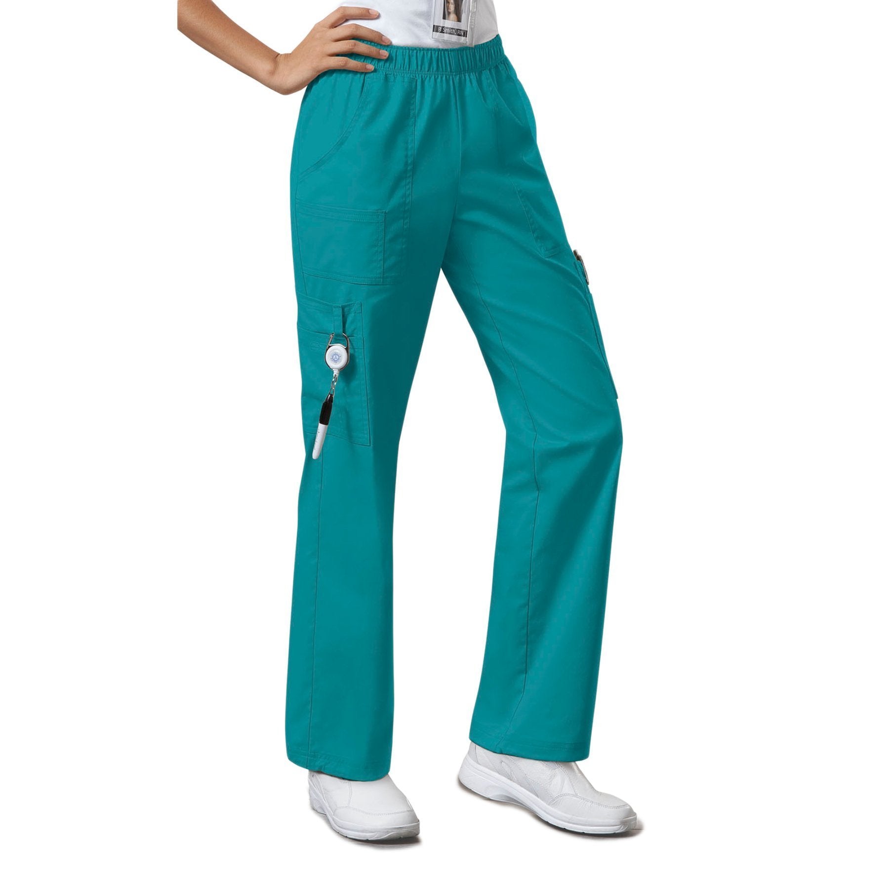 Cherokee Workwear Core Stretch 4005 Scrubs Pants Women's Mid Rise Pull-On Cargo Teal Blue