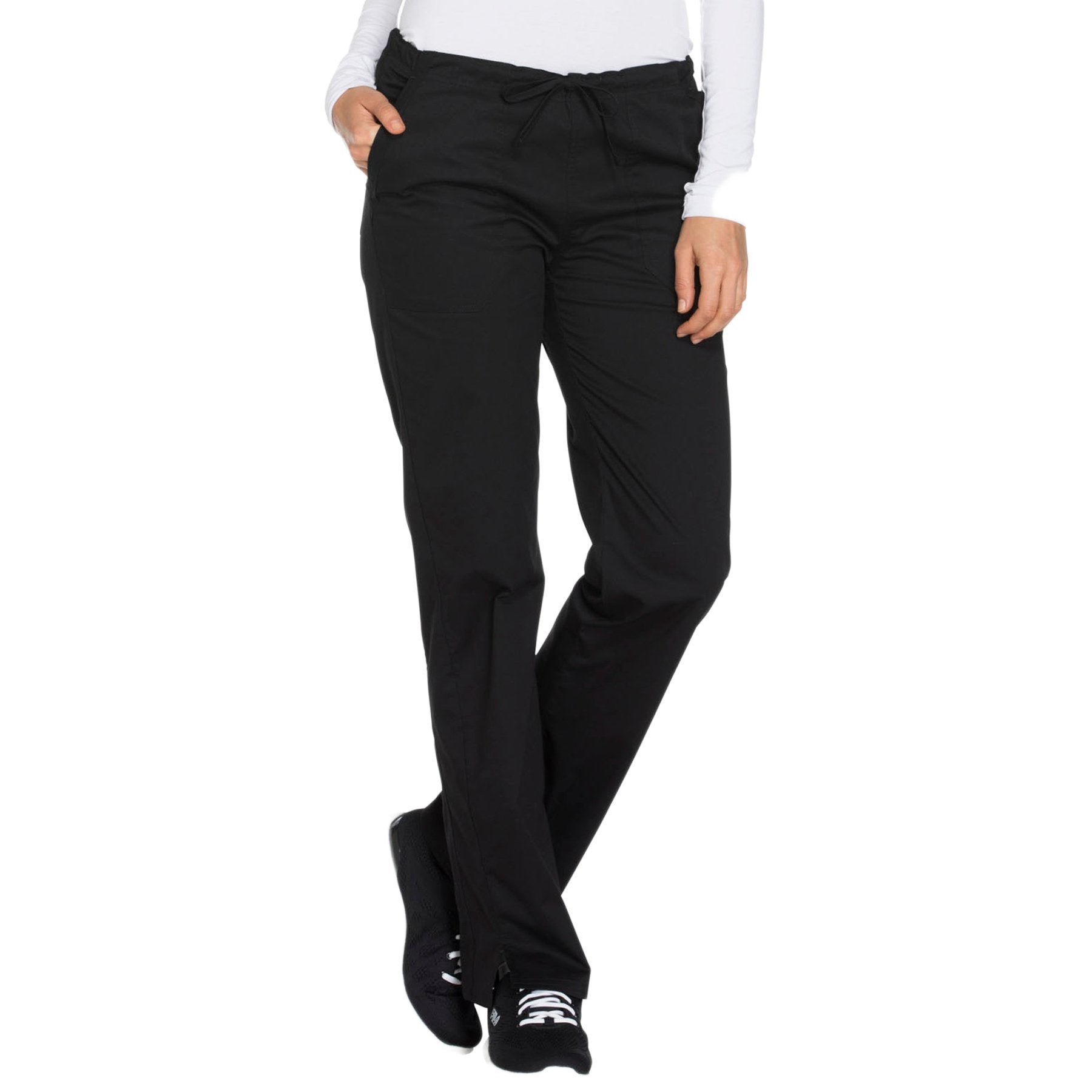 Cherokee Core Stretch WW130 Scrubs Pants Women's Mid Rise Straight Leg Drawstring Black