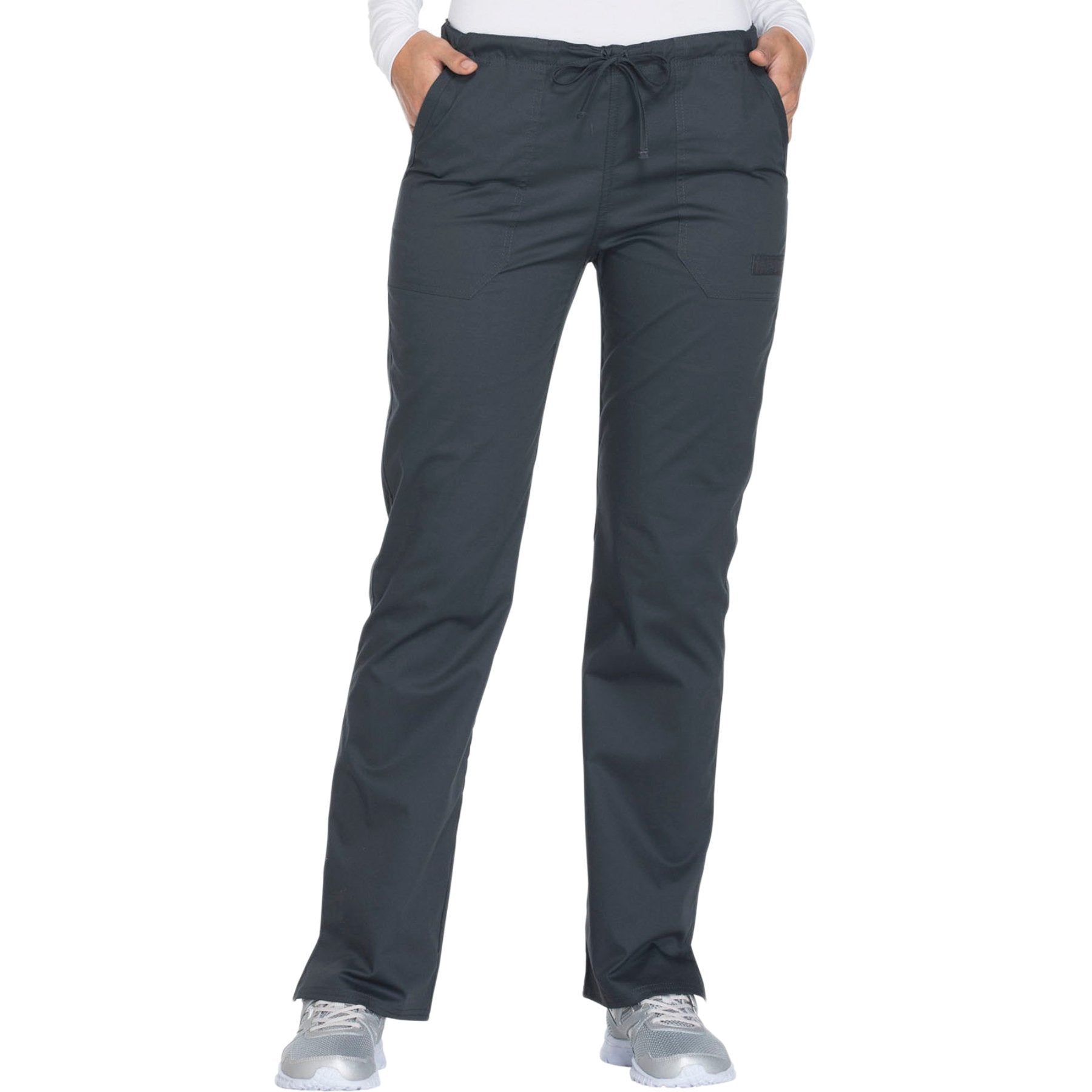 Cherokee Core Stretch WW130 Scrubs Pants Women's Mid Rise Straight Leg Drawstring Pewter